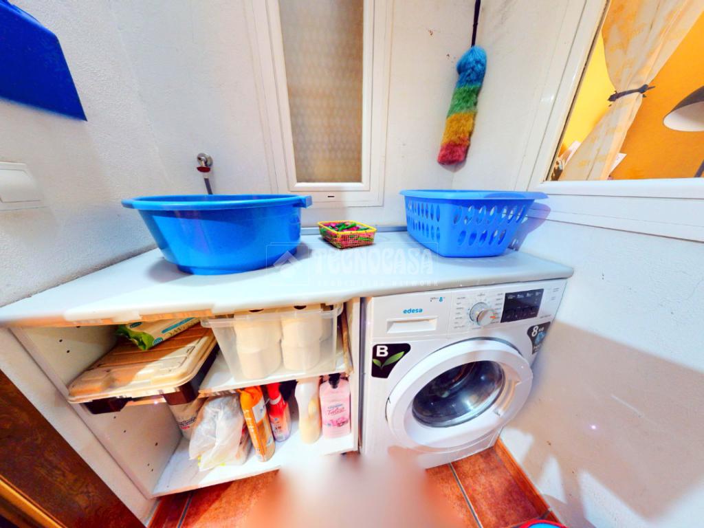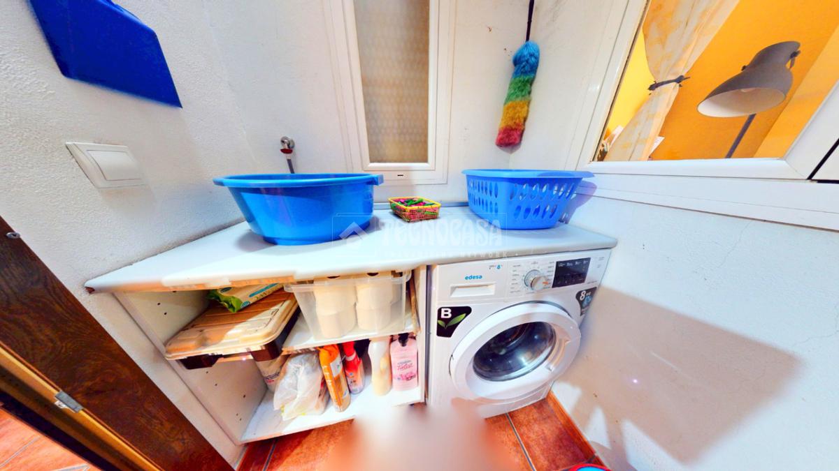 La vivienda se distribuye de la siguiente manera. En la planta principal nos encontramos con una acogedora sala de estar, que da paso al patio de luces, donde se ubica la zona de lavadora y tendederos, un espacio práctico y bien aprovechado. En esta misma planta disponemos de un aseo, aportando comodidad a la zona de día. A continuación, accedemos al salón con cocina americana, un espacio amplio y luminoso, ideal para el día a día, con salida directa a una terraza con cerramiento que comunica con el patio, creando una agradable conexión entre el interior y el exterior.