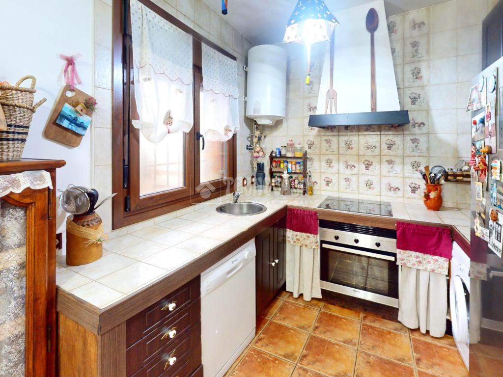 La cocina, integrada pero bien diferenciada, dispone de mobiliario funcional, gran capacidad de almacenaje y espacio cómodo de trabajo, ideal para el día a día.